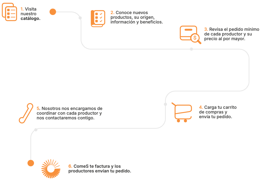Si eres una tienda o necesitas comprar alimentos al por mayor. Descubre los beneficios de comprar en ComeS y disfruta de la calidad y el servicio que mereces. Ahorra tiempo, amplía tu catálogo y todo en un solo lugar.