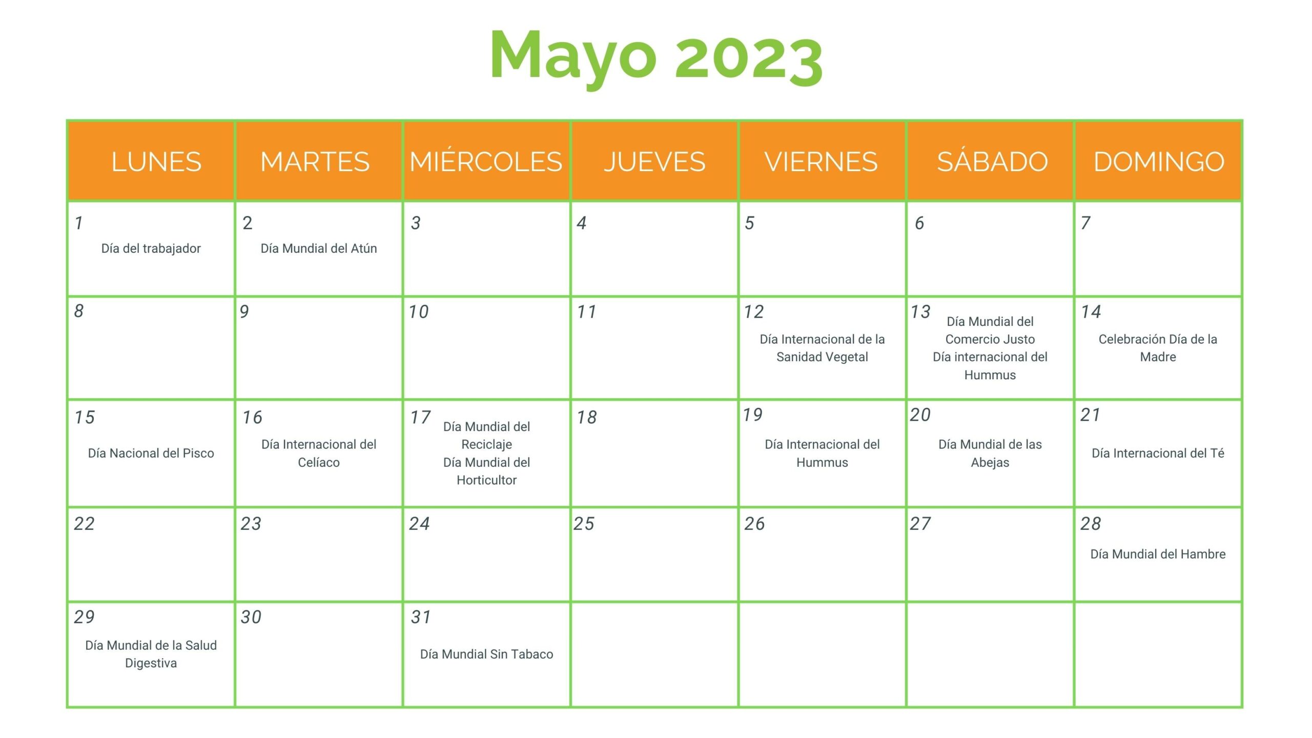Por eso a continuación te dejamos el calendario de los próximos meses, así podrás seleccionar aquellos días que hagan más sentido con tu negocio.